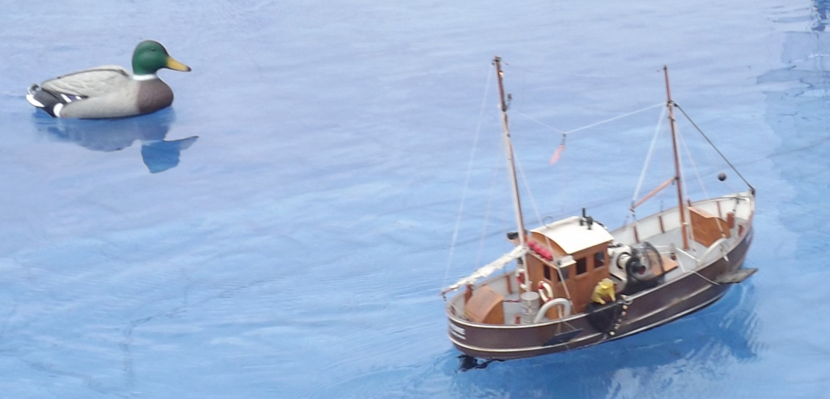 Paula III, Dolly, Nordeney with chase boat, Barbie and Ken recreation boat, 3 pleasure boats, and a duck |