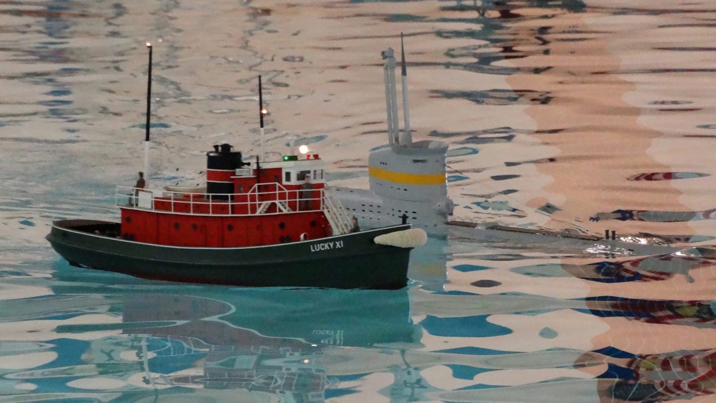 Bristol Bay, Kings Ransom, South Hampton tug, Seahund Sub, Blueback sub, Lafayette sub, Jersey City, Disney's Nautilus, Sailboat with internal motor,